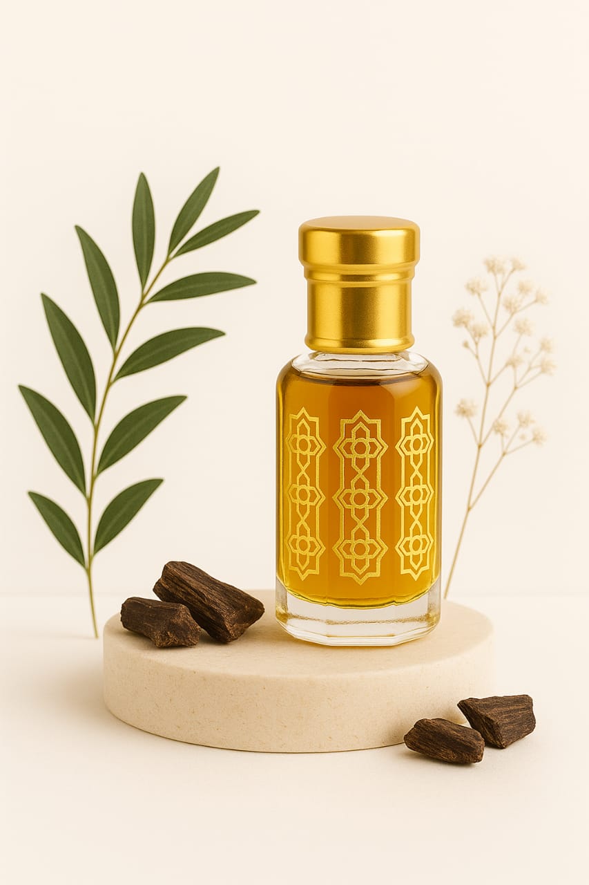 🌿 Heart Notes: As the composition deepens, an exquisite trio unfolds—smoky agarwood (oud), creamy white amber, and a fresh touch of rosemary. Together they build a sophisticated core that balances strength and serenity.
