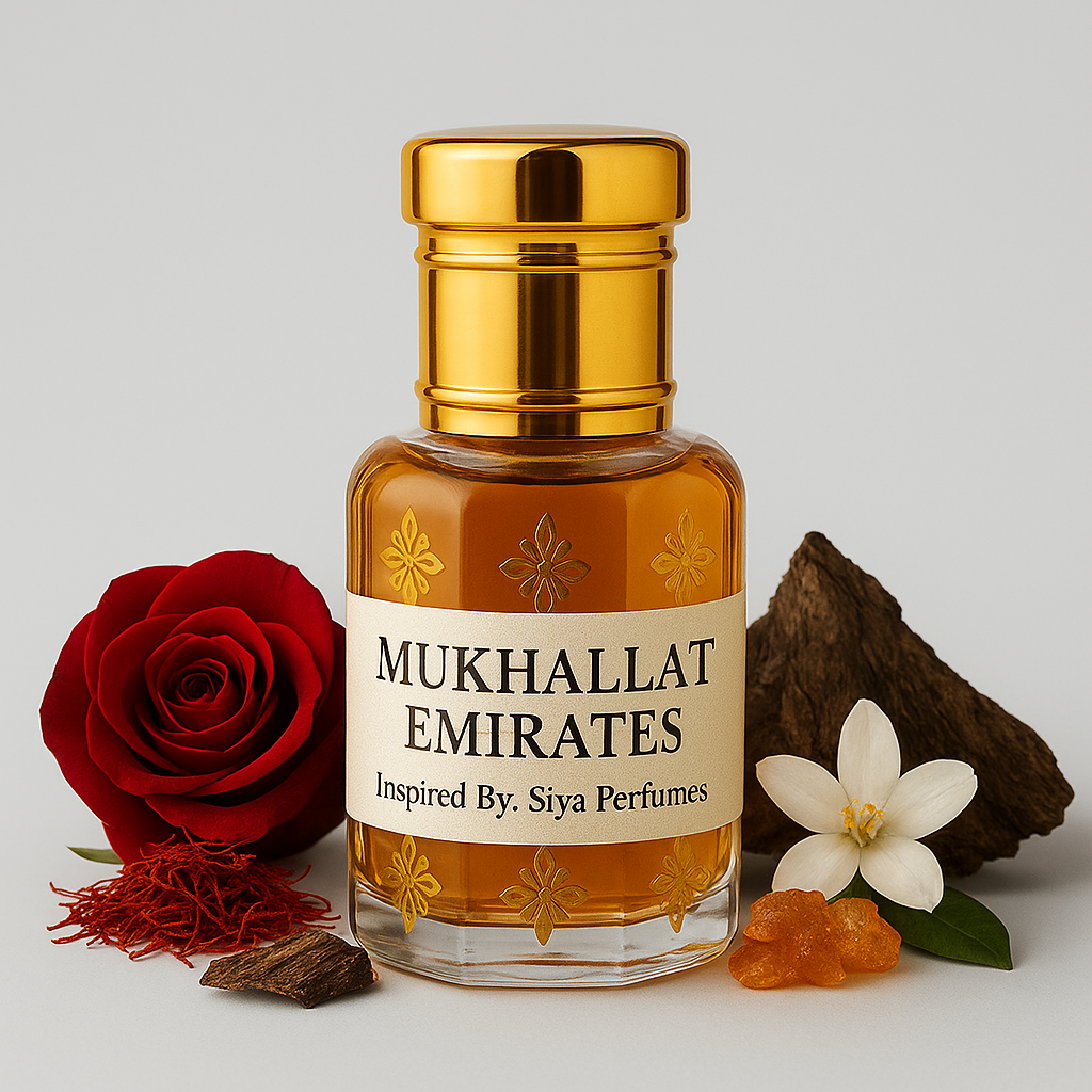 A tribute to timeless elegance and Arabian opulence, Mukhallat Emirates is a regal blend of oud, florals, and warm spices that unfolds like an aromatic tapestry. The scent opens with the commanding presence of agarwood (oud)—deep, resinous, and hypnotic. Delicate floral notes soften the intensity, weaving in a romantic flourish that whispers refinement.